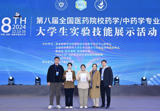12月13日-15日,由教育部高等学校国家级实验教学示范中心联席会、全国药学类院校大学生专业技术与实验技能竞赛组委会、教育部药学课程虚拟教研室、101计划中药新药研究课程虚拟教研室、中国药科大学联合主办,成都中医药大学承办的“第八届全国医药院校药学/中药学专业大学生实验技能大赛”在四川成都落下帷幕。我校由药学院副院长孟祥国带队,指导教师代表张宜凡、万国庆随队,遴选2名优秀学子汪静文、谭倩参加此次技能展示并首次获全国一等奖1人,二等奖1人,实现了新突破!