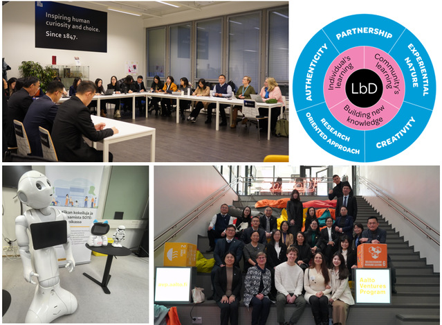 罗约阿应用科学大学令人印象深刻的三种特色教学模式:基于发展的学习(Learning by Developing,LbD)是罗约阿应用科学大学开发的一种屡获殊荣的教学模式;真实场景实践教学(Real practice teaching);以学生为中心,强调学生主动参与和实践,注重研究方法,鼓励创新的工作坊教学模式(Workshop teaching)。参访的芬兰其他大学也有不同形式的类似教学模式,一切的目的都是为了发展,为了发展学生的长处,为了合作伙伴的发展需求,为了适应快速发展的社会。