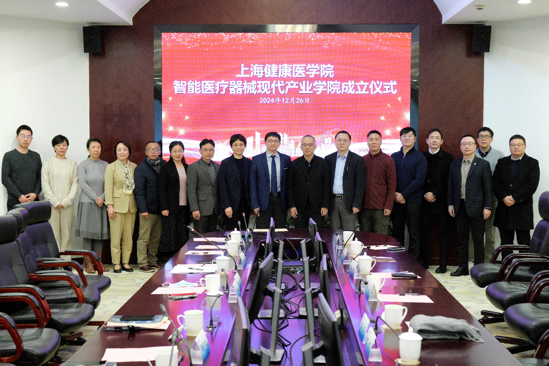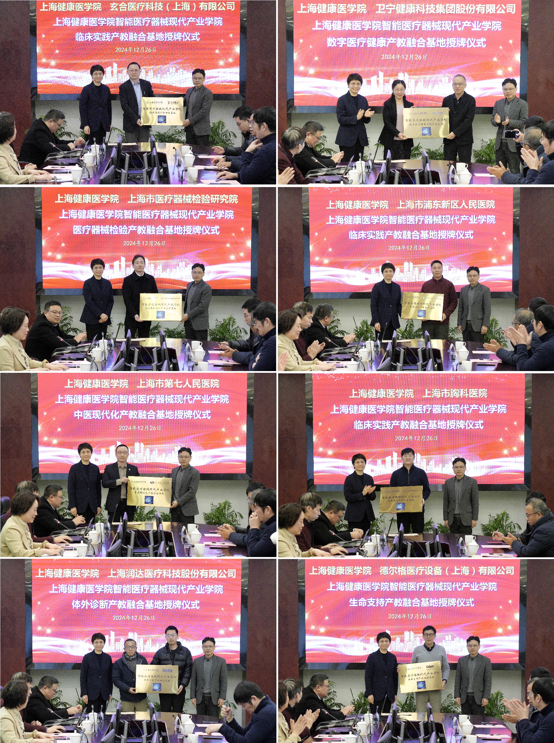 2024年12月26日,上海健康医学院智能医疗器械现代产业学院成立仪式在北苑1号楼108室举行。教务处副处长(跟岗锻炼)孟祥国,医疗器械学院全体党政班子成员、学院各教研室主任和骨干教师代表参加成立仪式,8个合作单位代表玄合医疗科技(上海)有限公司董事长、院长丁罡、卫宁健康科技集团股份有限公司总裁王涛和党总支书记白冬梅、上海市医疗器械检验研究院副院长顾楠、上海市浦东新区人民医院副院长万健、上海市第七人民医院副院长胡聃、上海市胸科医院设备科主任顾伟、上海润达医疗科技股份有限公司技术服务副总监丁秋泉和技术经理张嘉、德尔格医疗设备(上海)有限公司研发部总监顾伟康出席成立仪式。会议由医疗器械学院副院长孙丽萍主持。