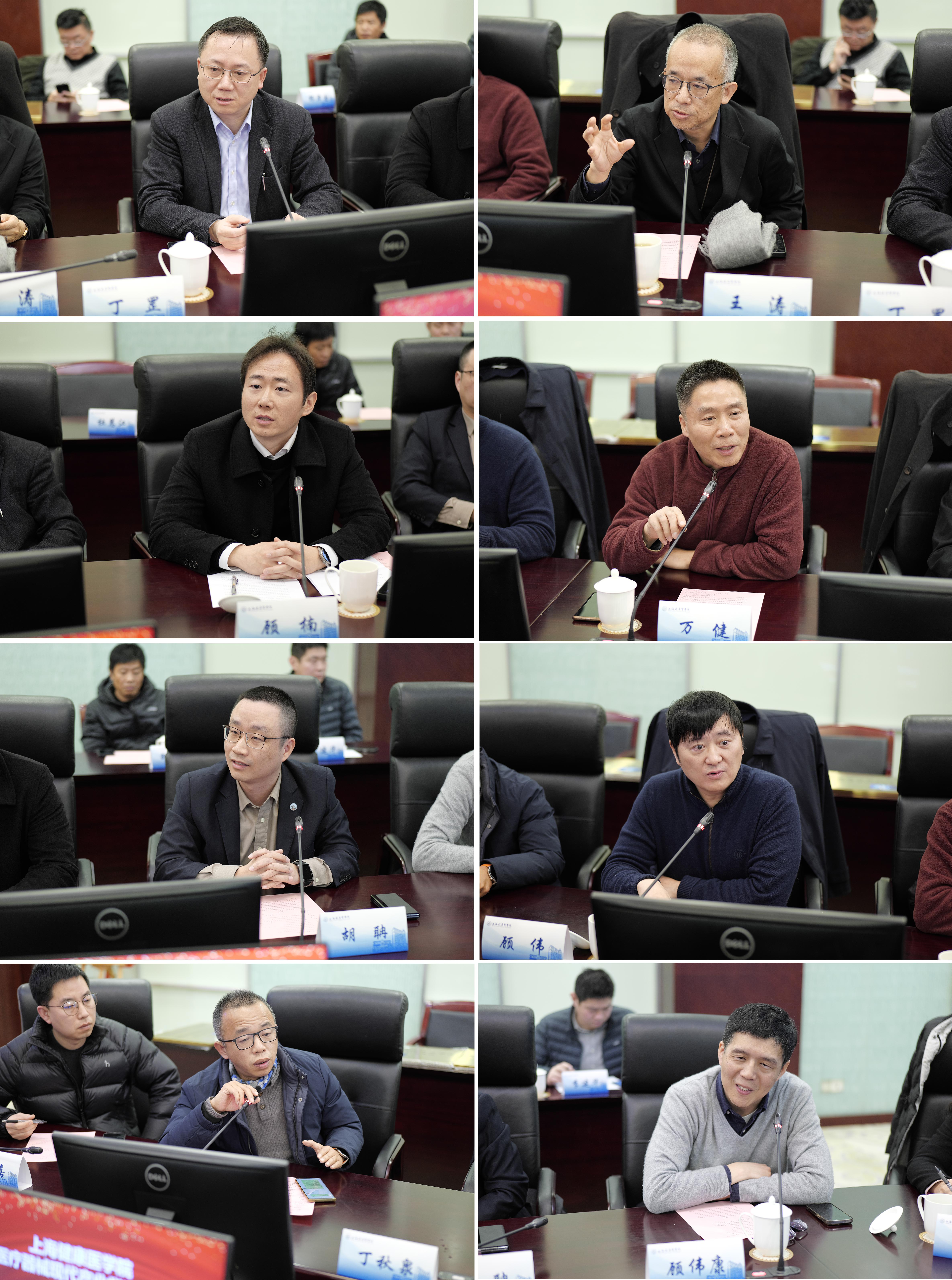 8家智能医疗器械现代产业学院合作单位代表分别作交流发言。他们分享了与医疗器械学院合作的历史、经验和成果,纷纷表示:现代产业学院的成立非常契合各共建单位和学校的事业发展方向,是一个极为有效的合作平台和支撑载体,一定程度上打破了组织壁垒和空间限制,可融汇各参与方的优势资源,必然会为学院的持续发展注入新的活力和动力,实现深度产教融合和互利共赢,后续会加强资源投入,深化协同育人水平。