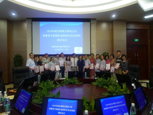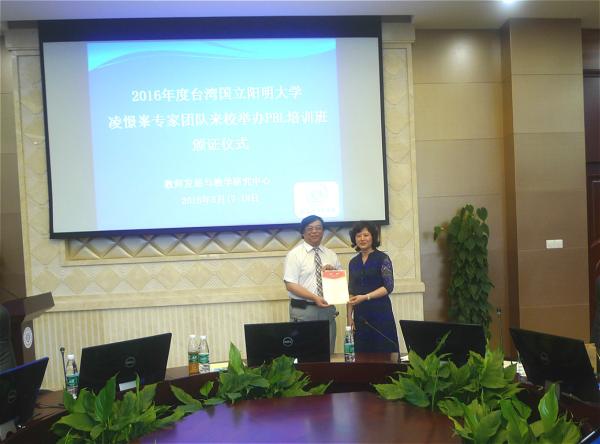 6月17日由凌憬峯、王培宁、黄惠君3位教授就问题导向小组学习的意义、方法、技巧、评价等进行阐述。下午学员分3组进行充分讨论。6月18日3位教授针对如何设计PBL教案进行详尽的指导,并示范了一个完整PBL教案的诞生过程。之后3组分别进行教案的设计工作,每组发挥团队协作精神,通过头脑风暴、思维激荡与积极尝试,在专家们的指导下,最后形成3份各具特色、充满想象,稍加修改即能课堂应用的PBL教学案例,赢得台湾专家们的一致好评,参与老师们展现出的认真、投入与热情,更是给导师团队留下深刻印象。临床医学院院长蔡巧玲也参与讨论环节的小组指导工作。成果汇报后,阳明大学专家团给每位学员颁发培训合格证书,唐红梅也代表学校向专家团颁发成功教学证书,并将培训活动气氛推向高潮。
