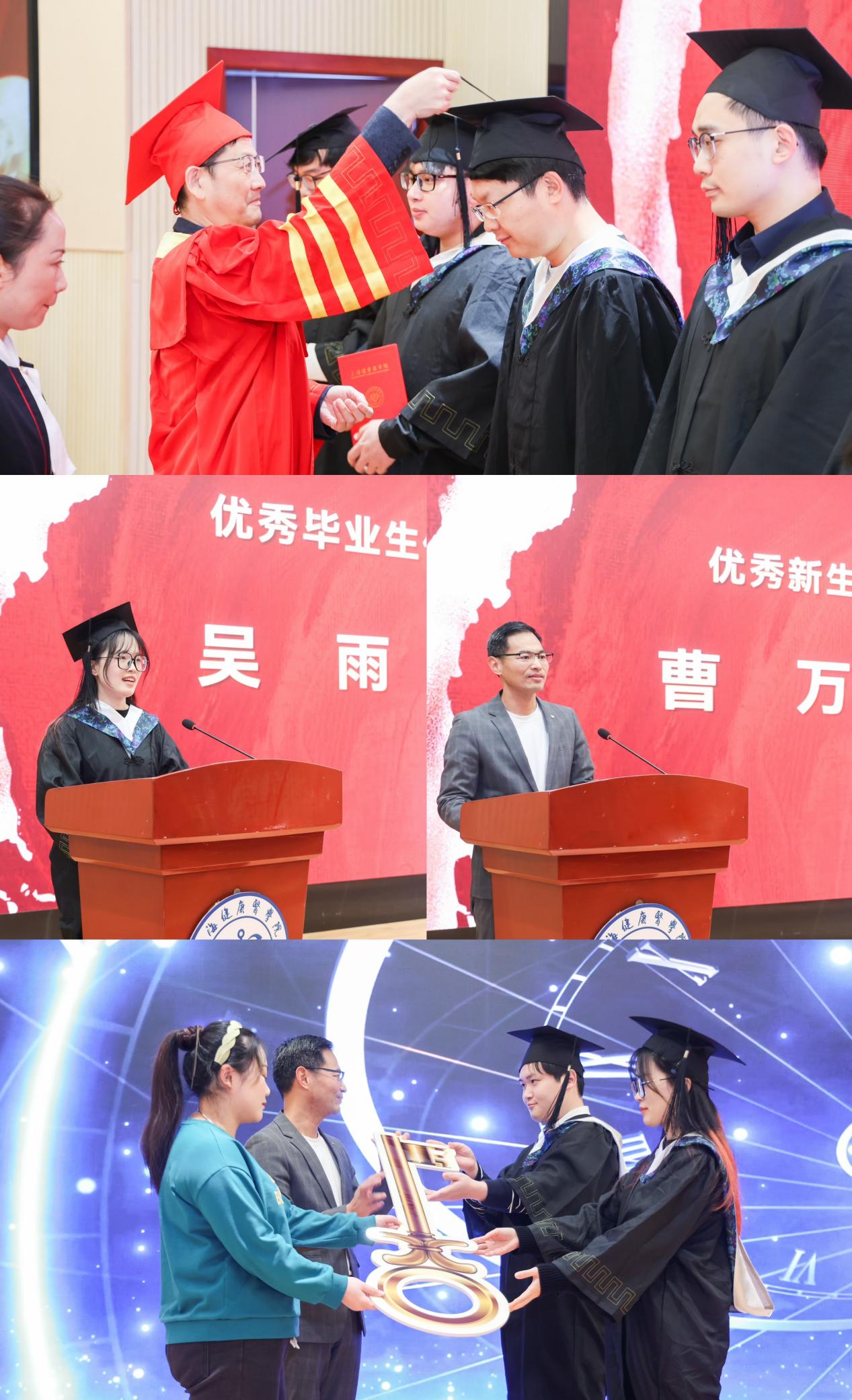 典礼上,毕业生和新生代表完成了一场特别的交接仪式。这是一把象征时间、知识与责任的“时光之钥”,老生把这份寓意着梦想与希望的“时光之钥”郑重地交到新生手中,鼓励他们在未来的学习生涯中,勇敢追梦。新同学不仅要传承和发扬学长们奋勇拼搏的精神,更要长江后浪推前浪,勇立潮头。接着,健康服务与管理专业曹万青代表今年入学的新生发言,他表达了要珍惜这份来之不易的学习机会,不负韶华,把责任铭记于心,落实于行,让健康之光薪火相传。
