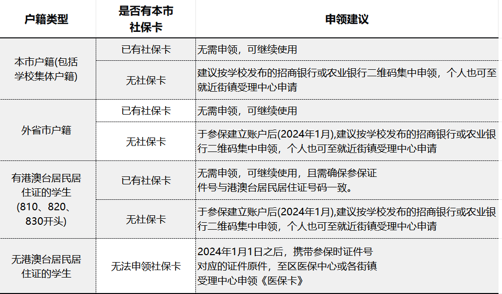 已参保的无《港澳台居民居住证》但以护照、通行证等证件申报的大学生,可申领本市《医保卡》。