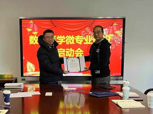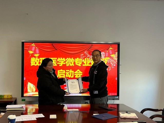 教学部主任耿铭为数理医学微专业的三门基础课程的负责人颁发了聘书,并对微专业建设提出了五点指导建议。一是脚踏实地,完成好课程的各项建设任务。微专业建设的基础工作是课程建设,是决定微专业建设成败的关键,要确保课程内容设计、教学资源、教学方法等都达到高标准,满足学生的学习需求。二是聚焦目标,朝着专业建设发展前进。数理医学微专业建设作为数理医学专业建设的前奏与序曲,也是数理医学专业的重要组成部分,微专业要胸怀梦想推动其向更高层次发展。三是着眼长远,明晰学科发展思路,建设学科发展阵地。团队成员形成具有前瞻性的学科发展思路,通过建设学科阵地为学科发展提供有力支撑,为专业建设建构扎实的学科基础。四是综合思考,全面取得成效。参与微专业建设的每一位成员要在建设工作中成长,教师要充分发挥课程建设所形成的成果的作用,积极参加各级各类教学竞赛,组织带领学生参加学科竞赛,给微专业提供创新的源动力。五是拓展资源,快速提升相关能力。微专业建设团队要积极拓展校内外部资源,加强与兄弟院校、行业、企业的合作,引进优秀人才和先进技术,快速提升微专业建设所需的相关能力。