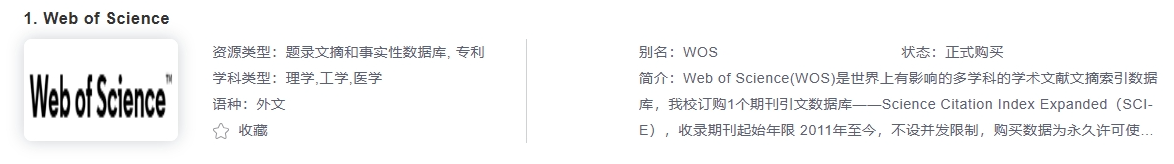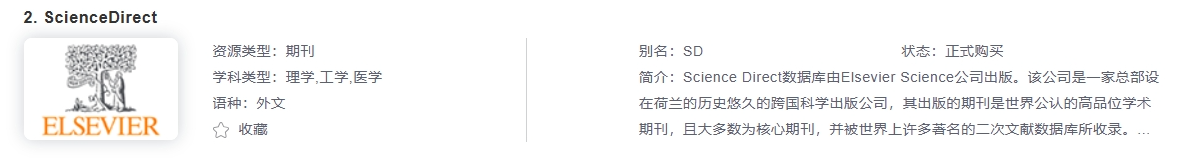 排名第一的高品质外文学术期刊数据库,我校购买了Engineering,Health Sciences,Nursing and Health Professions,Pharmacology/Toxicology and Pharmaceutics四个学科包现刊共1000余种期刊。