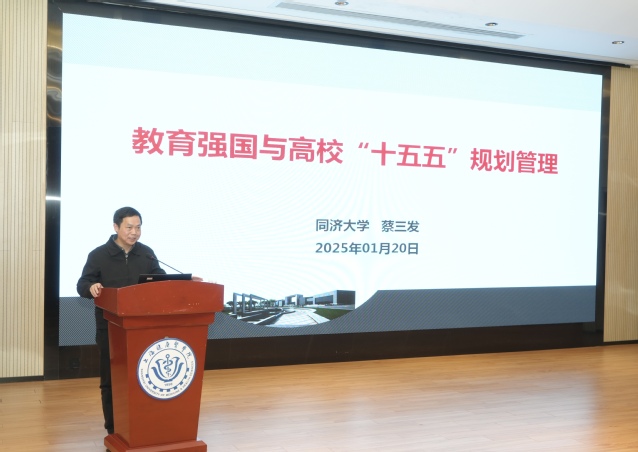 动员会第二阶段进行了“十五五”规划编制工作专题培训。同济大学政治与国际关系学院党委书记、高等教育研究所所长、上海市高校智库同济大学教育现代化研究中心首席专家蔡三发教授为全校职能部门和二级学院(部)有关同志作规划编制方法培训。蔡三发教授以理论与实践深度融合的报告形式,从高等教育发展形势、大学战略规划必要性、大学发展战略规划编制内容、大学发展战略规划编制方法等多个方面深入浅出的介绍规划编制的理论与方法,还就规划文本结构、规划编制人员能力要求等问题作了详细阐释。