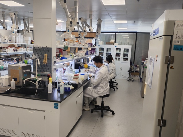 进入协同科研中心东苑实验室,整洁明亮的实验区域随处可见正在刻苦钻研的团队师生们。在各团队负责人的引导和启发下,科研工作丝毫没有因假期停滞,大家都沉浸在课题和项目的研究中,用勤勉与汗水践行着自己勇攀科学高峰的理想和追求。