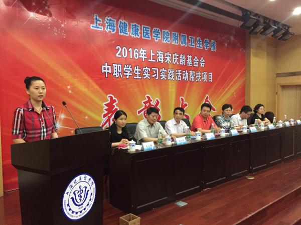 会上曹蓉蓉宣读了2016年上海宋庆龄基金会中职学生实践活动“优秀学生”表彰决定,获得此项基金会表彰的“优秀学生”共158人次,获得资助的困难实习生有43人次,共计奖助金4.7万。附属卫校常务副校长朱文娟对上海宋庆龄基金会、上海市职业教育协会致力职业教育事业发展,关注中职实习生的成长表示衷心感谢,并介绍了附属卫校2016年上海宋庆龄基金会中职学生实践活动帮扶项目的开展情况。