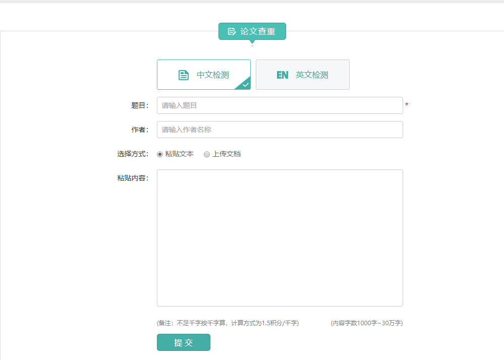 (中文查重界面)