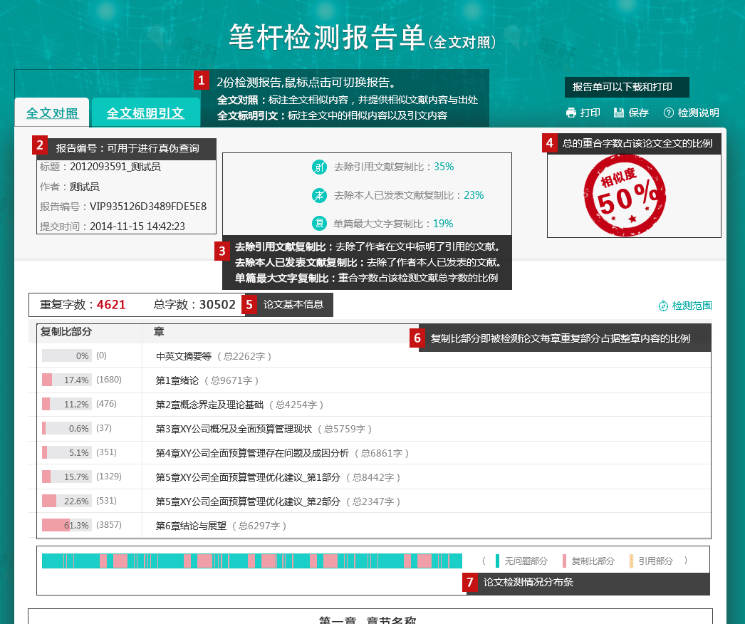 (丰富的报告参数,个性化展示,文字与图形化结合,比例结果清晰明了,一目了然)