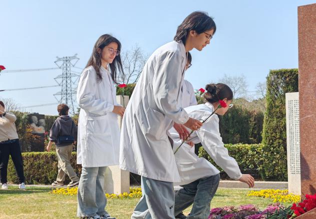 “站在福寿园苍翠松柏间,我凝视着镌刻捐献者姓名的纪念碑,指腹轻触冰凉的铜质铭文,轻轻放下一束绽放的红花。在认真聆听和庄严宣誓后,我更深刻地理解希波克拉底誓言中‘生命神圣’的真谛:当无数双手托起医学进步的星火,我们唯有以敬畏之心承接这份生命的馈赠,在未来的手术刀与听诊器间延续这份跨越生死的仁心传承。”