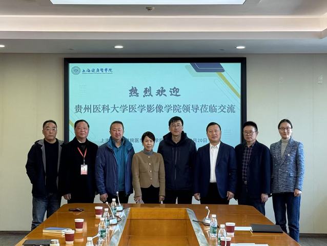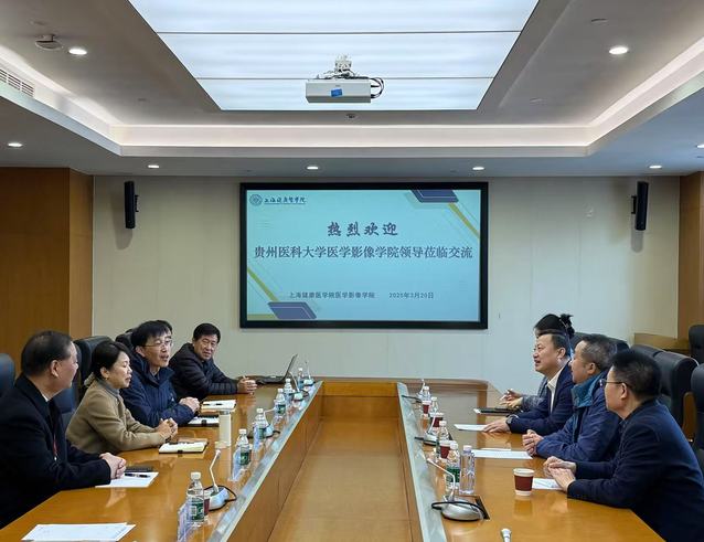 3月20日上午,贵州医科大学(以下简称“贵医大”)医学影像学院党委书记彭安辉、院长李伟、综合办公室主任段庆红和智能影像工程专业负责人杜霞一行来到上海健康医学院(以下简称“上健医”)医学影像学院开展调研交流活动。上健医医学影像学院党总支书记朱清、院长李晓欧、智能影像工程专业主任程敬海、骨干教师等亲切接待。