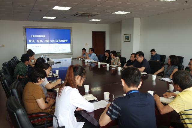 7月8日,学校召开校训、校徽、校歌(试用)发布座谈会,校党委书记郑沈芳、副校长曹蓉蓉、于莹、张道方等校领导,以及各直属党组织书记、职能部门负责人代表、学生代表等近40人参加了座谈会。