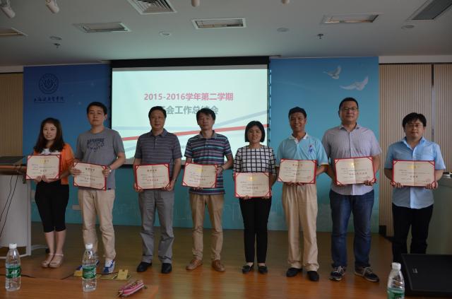会议由工会副主席芦静主持。会上,工会常务副主席凌文惠宣读了第二届上海高校青年教师教学竞赛学校初赛和市赛的获奖名单,由教务处长张梅、人事处副处长黄寅和教师研究及发展中心负责人解军颁发了荣誉证书。校工会委员胡兆燕宣读了2016年教职工“三笔字”比赛的获奖名单,由校工会委员为获奖者颁发了荣誉证书。校工会委员郁建新介绍了教工文体爱好者协会的组建情况并宣读了各协会会长和秘书长的名单。工会常务副主席凌文惠以ppt的形式,详细的回顾了2015—2016学年第二学期的工会工作。而后,信管学院工会主席杜小磊、教辅联合组工会主席解晓峰分别从如何利用好网络多媒体平台做好工会服务工作和如何提升二级工会干部凝聚力发挥作用两个角度进行了工作交流。