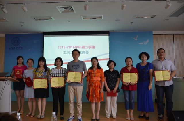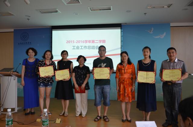 7月7日下午,校工会在浦东校区南苑召开了2015—2016学年第二学期工会工作总结会,党委副书记、工会主席李明磊、校工会委员、二级工会主席及委员、教工文体爱好者协会会长、秘书长及各类比赛的获奖者出席了会议。