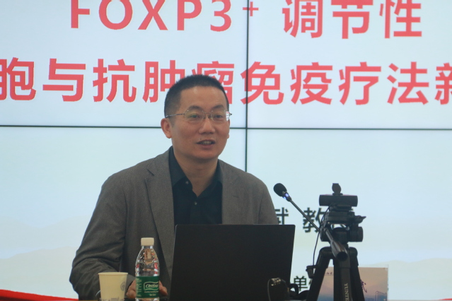 为进一步推动学科交叉融合,提升师生学术视野,3月27日上午,科技处联合药学院在北苑1号楼500会议室举办第十期《健·谈》系列学术讲座。本次讲座特邀上海交通大学医学院李斌教授作题为“FOXP3+调节性T细胞与抗肿瘤免疫疗法新进展”的专题报告。药学院党总支书记、院长徐一新教授主持会议,药学院、协同科研中心、医学技术学院等四十多位师生参与学习和交流。