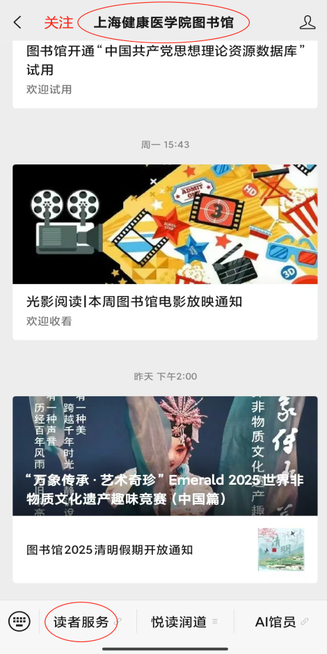 微信关注上海健康医学院图书馆——读者服务——资源荐购——提交荐购