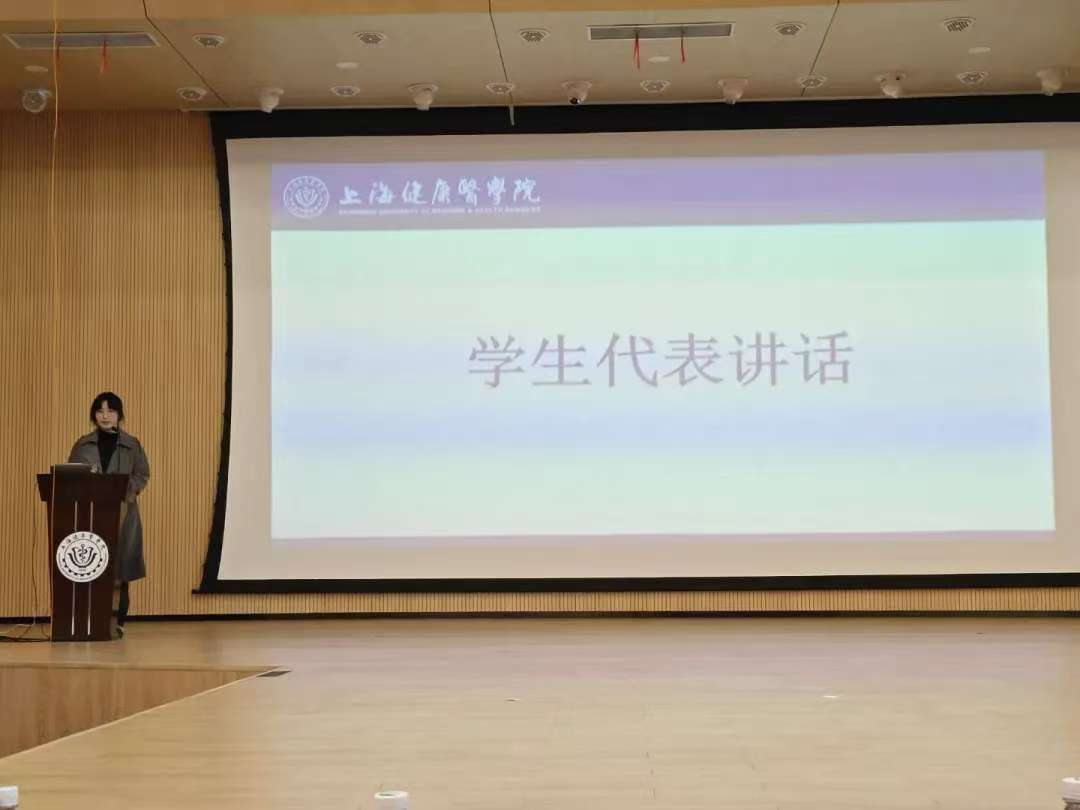随后,学生代表李尤嘉分享了她在药学学习与实践中的成长经历,号召同学们以开放包容的心态拥抱科技创新,同时坚守“药者仁心”的职业道德,为人类健康事业贡献力量。
