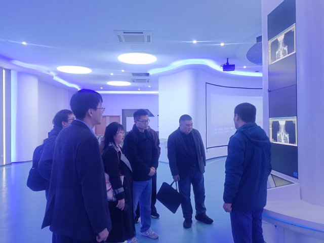 在李晓欧的引领与介绍下,杨浦区精神卫生中心的科研团队对学院的医学影像实验教学中心进行了参观。该团队对中心的各类大型医疗设备、实际应用场景、教学设计以及在人才培养方面取得的成就表示了高度赞赏。