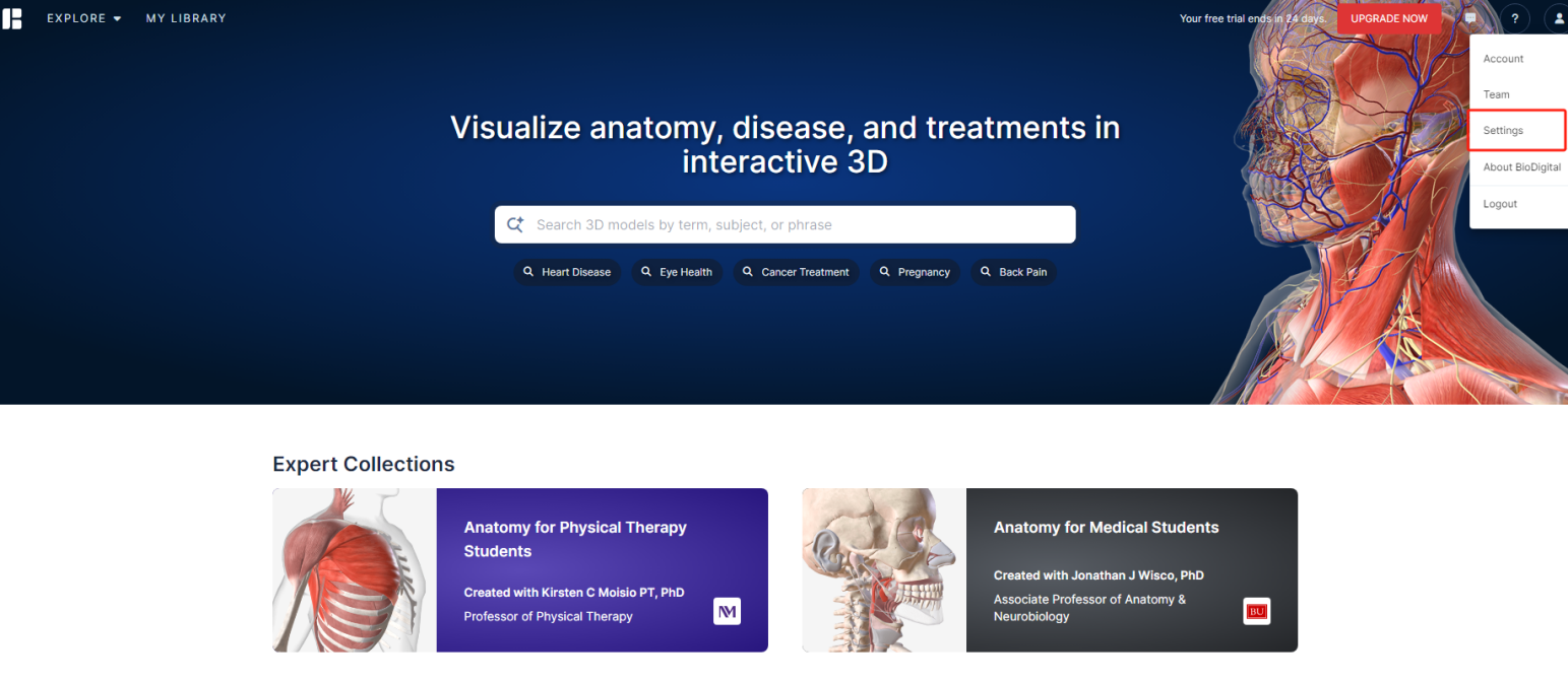 4、如您在学校校园以外访问解剖库,请访问 https://human.biodigital.com/login,以您注册的个人账号登录即可进入数据库。