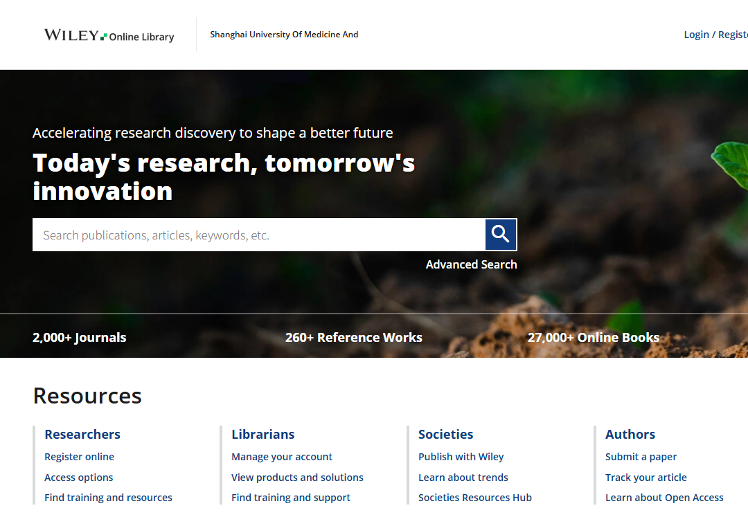 在上海健康医学院IP范围内,访问Wiley Online Library网址,有如下标识,即可检索和下载全文。