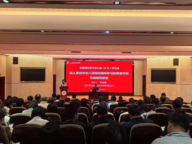 4月25日下午,学校举办深入贯彻中央八项规定精神学习教育读书班专题辅导报告暨党委理论学习中心组(扩大)学习会。邀请市委党校学习教育课程师资团队成员周建勇教授作“学习习近平总书记关于加强党的作风建设的重要论述,贯彻中央八项规定精神”专题辅导报告。