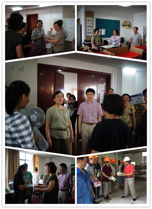 炎炎夏日,骄阳似火,上海进入了连日的高温烧烤模式,也正值学校校区功能布局调整之际。后勤资产处、基建处、保卫处、教务处等职能部门都还坚持岗位,冒着酷暑,挥汗加班。7月26日上午,校领导心系教职工,组织开展了慰问暑期在岗教职工和非编人员的“送清凉活动”。在工会、党办、校办及职能部门负责人陪同下,党委书记郑沈芳、党委副书记、纪委书记、工会主席李明磊、副校长曹蓉蓉、唐红梅、于莹、张道方赴招生办、财务处、食堂、门岗、园区、基建工地等处,看望并慰问了暑假期间坚守岗位的教职工和非编劳务工,送上学校的关爱和夏日的“清凉”。