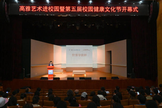 于莹在致辞中指出,2025年是学校实现第一次党代会第一步战略目标和“十四五”规划的收官年,是“十五五”发展的谋划年,也是学校建校十周年。迈向聚焦国家战略、聚焦服务贡献、聚焦改革创新、聚焦精准发力的新征程,为建设强大的思政引领力提出了新要求。“文化创新引领未来,科普赋能健康生活”作为第五届校园健康文化节的主题,不仅是一个口号,更是我们前行的方向。本届文化节涵盖文化、艺术、运动、饮食等多个维度,以话剧《艺术》开篇,拉开五月鲜花般的精彩纷呈。于莹希望文化创新成为滋养心灵的源头活水,科普浸染转化为生活方式的健康时尚,希望全校各部门各单位组织的一场场活动,如同毕德哥拉斯碎形韵律,带来鹦鹉螺的黄金循环,传递健康理念、倡导阳光快乐。