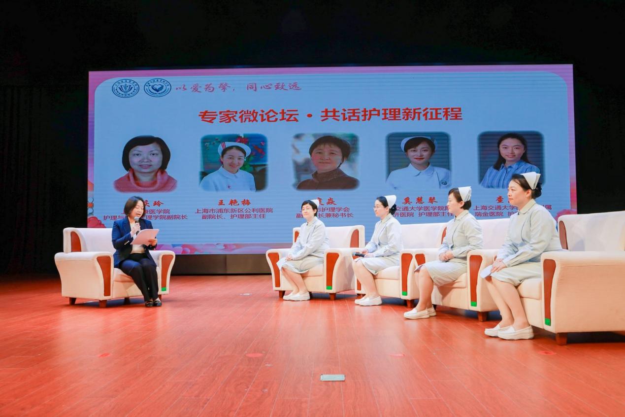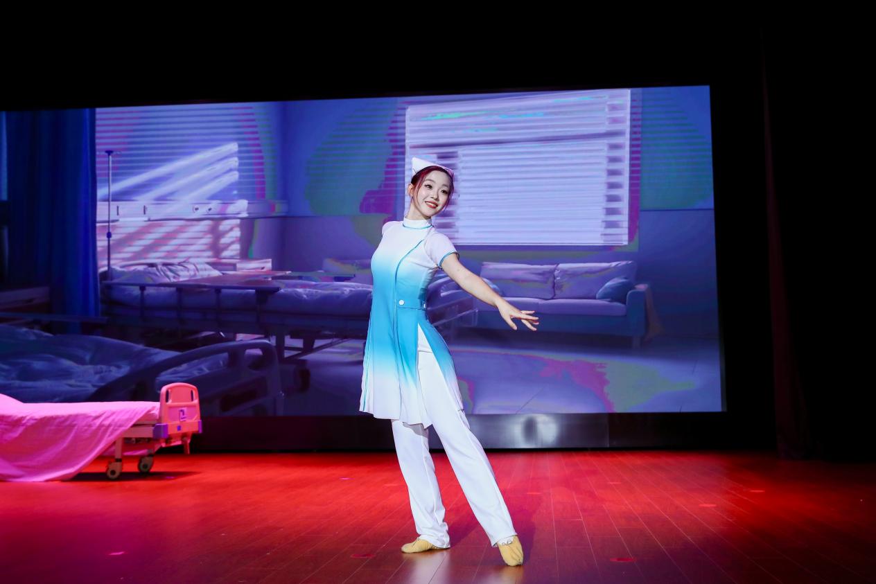 第二篇章是“擎爱守护生命,创新赋能向未来”。首先,展开专家微论坛“共话护理新征程”。护理与健康管理学院副院长汪庆玲担任论坛主持人,上海市浦东新区公利医院副院长、护理部主任王艳梅,以及庹焱、奚慧琴、查庆华四位专家开启关于责任、创新与希望的深入探讨,围绕护生职业发展路径,从临床适应、专业成长、价值坚守到未来展望层层递进,助力护生明晰职业方向。接着,校大学生艺术团郭怡心同学带来独舞作品《平凡天使》,“平凡铸就伟大,英雄来自人民”,无数白衣天使以平凡之躯披甲逆行,用双手托起生命的微光。随后,第二届职业技能大赛国赛金牌获得者曾小桉进行参赛事迹分享。习近平总书记关于技能人才工作的重要指示精神引导青年确立正确的理想信念、价值理念、道德观念,走技能成才、技能报国之路。曾小桉的演讲激励同学们用专业与温度守护生命,以技能为翼,以仁心为灯,为健康中国贡献力量。最后,上海市浦东新区公利医院副院长、护理部主任王艳梅带领护生庄严宣誓,从这一刻起,他们正式踏入护理事业的征途,相信他们定会秉持南丁格尔精神,以青春热血,在护理领域书写灿烂篇章。