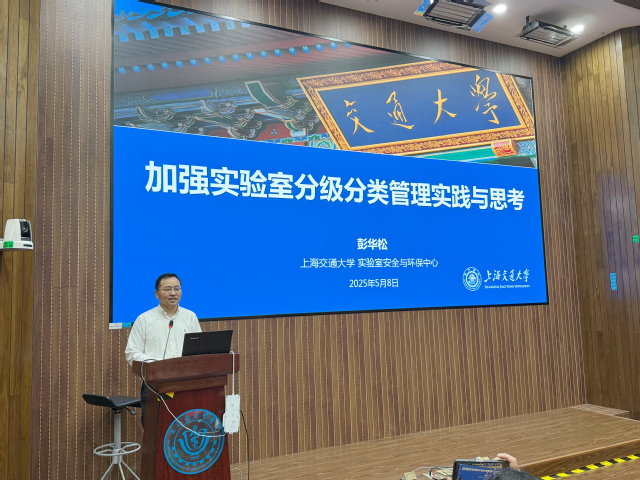 2025年5月8日下午,资产与设备管理处在南苑E100会议室成功举办了以“加强实验室分级分类管理实践与思考”为主题的实验室安全讲座,邀请了上海交通大学实验室安全与环保中心彭华松副主任主讲,吸引了来自二级学院(中心)的实验室安全负责人、师生代表等130余人参与,资产与设备管理处副处长邢寰宇主持讲座。