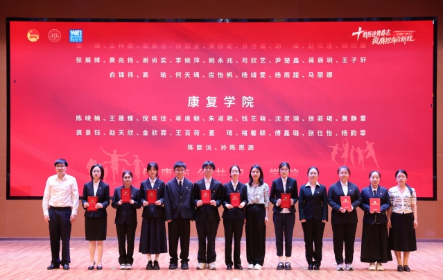 最后,学工部部长、学生处处长童清为第十四届“挑战杯”中国大学生创业计划竞赛银奖、第四届全国卫生健康行业青年志愿服务项目大赛铜奖等项目获奖集体代表颁奖。