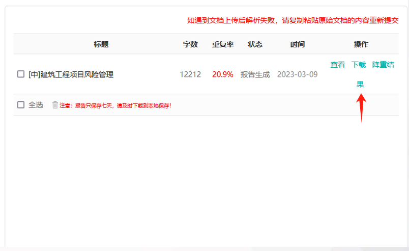 上传检测后等待几分钟即可出检测结果,可以查看或下载检测结果