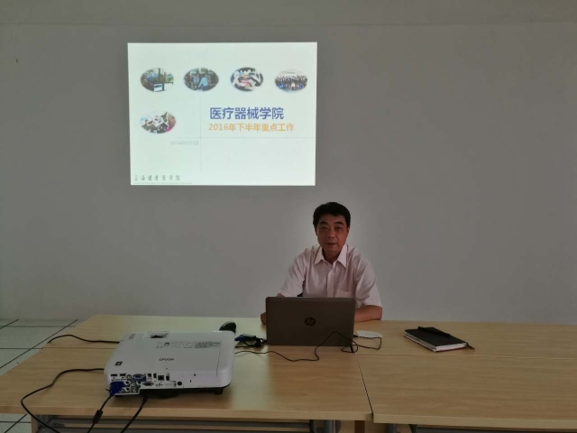 会上,院长胡兆燕从指导思想、工作目标、具体举措、主要指标四个方面介绍了2016年下半年重点工作,讲述了“规模适度、内涵发展、重点突破、彰显特色”的主体思路、“二级管理、问题导向”的工作方式、“打造应用型本专科专业、建专本硕职业教育体系、探索国际认证特色专业”的发展目标、“以医疗器械技术应用为特色,建设应用研究能力强、产学研结合紧密的人才培养基地、医疗器械研发基地、成果转化基地”的建设路径,并重点阐述了学科建设、专业布局、人才培养体系构建、师资建设、科研及社会服务、国际合作等具体举措,从而实现制度完善、体系构建、队伍优化、提升层次等工作目标,同时,特别介绍了作为下半年工作重点的“本科激励计划实施方案”。副院长李晓欧从本科学科建设、重点科研工作、经费具体落实等三个方面介绍了2016年下半年的学科及科研工作计划,在学科建设方面鼓励教师开展本科专业调研和各类教学教改活动,提前准备重点课程、教改课题等材料,在科研方面要求教师积极参与各类科研项目申报、力争国家级科研项目立项,同时,强调无论是学科建设还是科学研究,都要加强与校企合作单位尤其是附属医院的对接。
