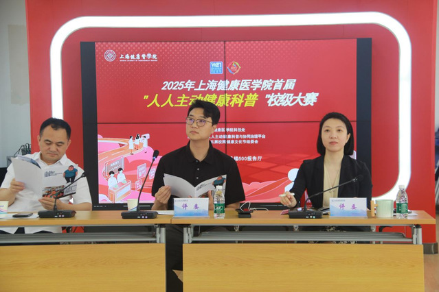 在建校十周年之际,5月17日,上海健康医学院第五届校园健康文化节活动——首届人人主动健康科普校级科普大赛决赛在北苑1号楼500室圆满举行。作为文化节的健康科普创新活动,本次大赛由科技处联合人人主动健康科普与协同治理平台、宣传部共同打造,一共11支来自各学院的精英团队参加决赛,以创意科普献礼建校十周年,为全校师生呈现一场融合专业性、创新性、趣味性于一体的健康科普盛会。