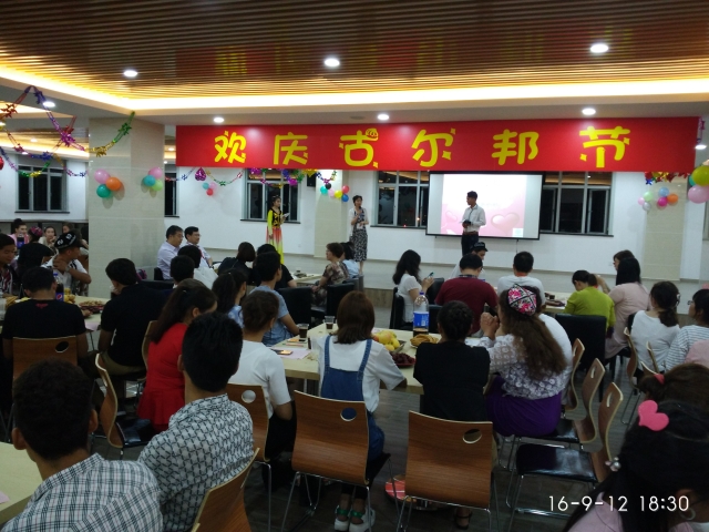 9月12日下午,我校北苑清真食堂洋溢着喜庆祥和的节日氛围,来自维吾尔族、哈萨克族、回族、乌兹别克族等少数民族150余名大学生欢聚一堂,载歌载舞,共庆古尔邦节。古尔邦节又称宰牲节,是我国部分少数民族最为隆重的节日,如同汉族的春节。我校领导高度重视。副校长曹蓉蓉、学生处和各学院相关工作负责人,以及相关学生工作管理人员,共同参加了活动。