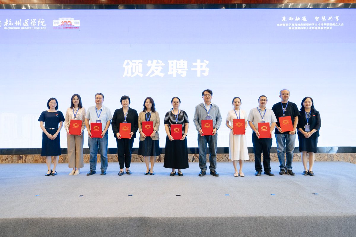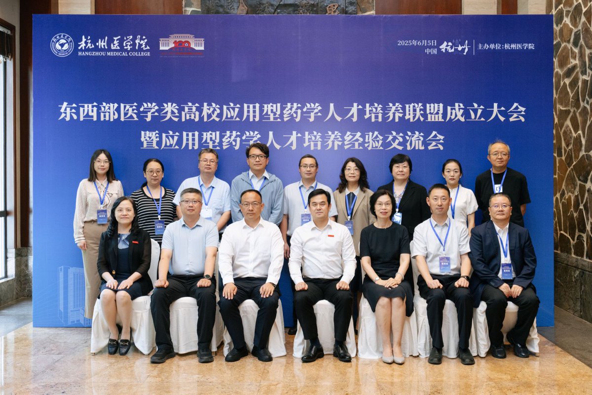 为深入推进“健康中国”战略,促进医药产业高质量发展,2025年6月5日,“东西部医学类高校应用型药学人才培养联盟(以下简称“联盟”)成立大会暨应用型药学人才培养经验交流会”在杭州临安顺利举办。本次会议由杭州医学院主办,以应用型药学人才培养为主题,旨在汇聚东西部医药院校及产业专家智慧,共商产业导向的药学人才培养新路径,共建跨区域协作育人平台,共绘交叉学科实战人才培养蓝图。教育部高等学校药学类专业教学指导委员会主任委员、中国药科大学原副校长姚文兵和15所联盟高校的校长、副校长、药学院院长参加了会议。我校药学院党总支书记、院长徐一新、副院长解伟参会。专家学者和教育工作者围绕应用型药学人才培养这一核心议题,展开了深入探讨与经验分享。