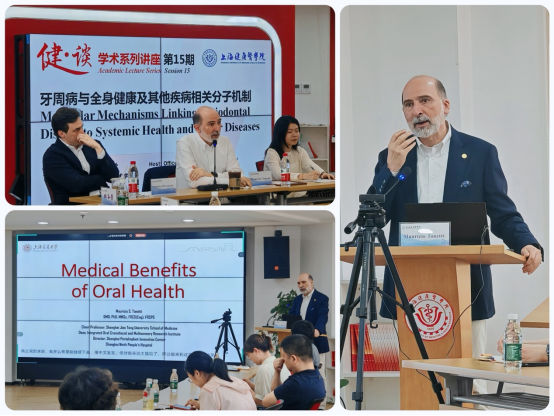 617日下午,科技处联合医学技术学院在北苑1号楼500会议室成功举办15期【健·谈】系列讲座。本期特邀上海交通大学医学院教授、上海交通大学医学院附属第九人民医院口腔颅面及感官综合健康研究院院长Maurizio Tonetti教授作报告,主题为《牙周病与全身健康及其他疾病相关联的分子机制医学技术学院林丹博士主持并作校内专题报告。会议设置AI同传字幕和线上转播,来自医学技术学院、药学院、协同科研中心、附属崇明医院、附属公利医院、附属周浦医院、附属嘉定区中心医院的70余名师生现场参会,线上线下参会百人。