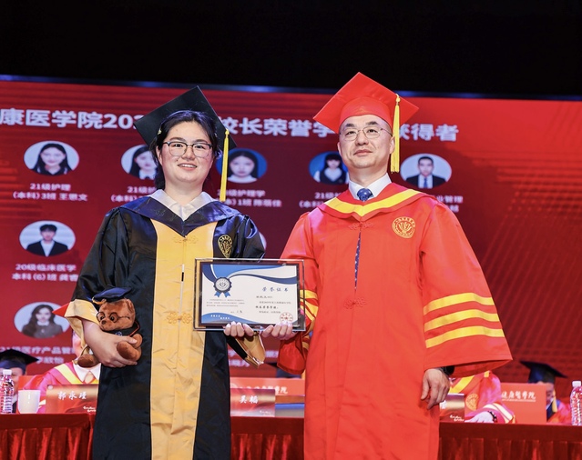 校长寄语,殷殷嘱托吴韬校长以“健康之路 强国之约”为题,为毕业生上最后一堂课。他寄语毕业生们砥砺前行,培养“淬火成钢”的坚韧。二温养仁心,保持“积极健康”的谦逊。三磨砺智慧,锤炼“开拓创新”的锋芒。四自立自强,铸就“追求卓越”的内核。勉励毕业生们勇当科技创新的“破风者”,乐为健康教育的“播种机”,甘做基层健康的“守门人”,将青春热血融入祖国壮丽山河,让奋斗足迹踏遍万里神州,在健康之路、强国之约的征程中勇毅前行,用奋斗书写无愧于时代、无愧于人民的壮丽篇章!
