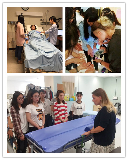 护理学院副院长陈荣凤、国际交流处副处长薛文隽及李莉老师共同聆听了本次汇报并进行总结指导,带队老师张霞主持汇报会。此次加拿大游学团的同学们不仅在课堂上学到先进的护理理论知识,还在实训室使用先进的设备进行了实用的模拟护理操作。学习课程包括了节力搬运病人、急救、家庭护理、内外妇儿病人的护理、压疮伤口的护理、静脉采血以及静脉注射等内容,还参观了当地的敬老院、精神病院以及综合性医院。