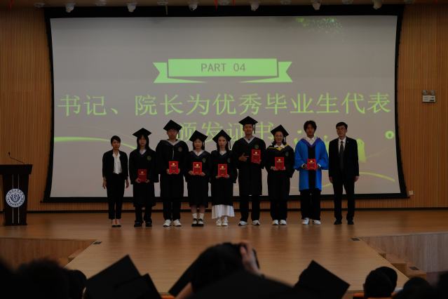 欢送仪式上,学院党总支书记朱清、院长李晓欧为优秀毕业生代表颁发荣誉证书,肯定了他们在校求学期间勇于拼搏、坚持梦想、脚踏实地的优良品质和取得的优异成绩。学院副院长姚旭峰、智能影像工程教研室教授李哲旭为毕业生代表颁发毕业证书与纪念品,祝贺大家用汗水换来收获,用努力获得硕果,圆满完成学业、开启新的征程。