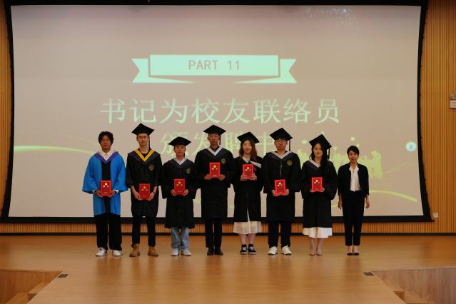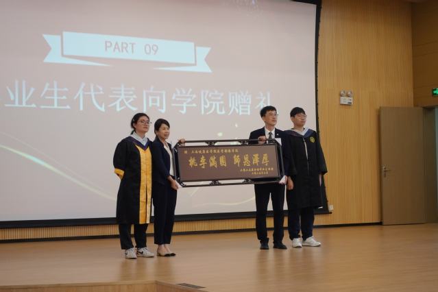 21级医学影像技术1班张莞冉作为毕业生代表发言。她代表全体毕业生表达了对母校、对老师、对父母亲友们的感恩之情,也向学院领导和老师们表态,将沿着校友们的奋斗足迹,传承永远谦虚、爱岗敬业、无私奉献的精神品质,永葆一颗赤子之心,成为母校的骄傲。随后,黄哲、王佳玲代表2025届毕业生向学院赠送篆刻有“桃李满园、师恩泽厚”的牌匾,以此表达对学院和老师们的感恩之情。乔慧敏宣读了《医学影像学院关于聘任2025届校友联络员的决定》,朱清为校友联络员颁发聘书。行者无疆,教育自有诗意;无问西东,岁月自成芳华。教育是一场幸福的遇见,亦是一场爱与被爱的修行,相信师生之间的情谊将永远延续。