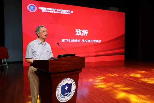 原卫生部部长张文康先生在致辞中对中国数字医疗产业战略联盟正式成立暨2016年数字医疗与产业化高峰论坛成功召开表示祝贺。他说,在健康中国2030规划纲要制定的大背景下,中国数字医疗产业战略联盟发起和成立是及时的,是能够起引领作用的。他相信联盟的成立一定能够帮助整个医学领域的同行跨部门、跨专业、跨企业的实现数字医疗领域的交流,并在相关产学合作、技术研发与转化、标准化、产业化及临床应用等方面,实现突破,并为解决当前数字医疗存在的一系列亟待解决的问题,提供一个平台一个机制。