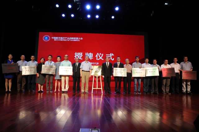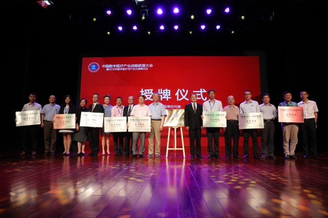 会上,原卫生部部长张文康,王威琪院士,戴尅戎院士,联盟理事长黄钢,副理事长刘进先生、陆晓炜女士,一起为中国数字医疗产业战略联盟揭牌。联盟的成立为推动数字医疗健康发展起到了积极的作用。同时,上海西门子医疗器械有限公司等9家理事单位和上海凯普生物化学有限公司等9家联盟会员单位领受了铜牌。