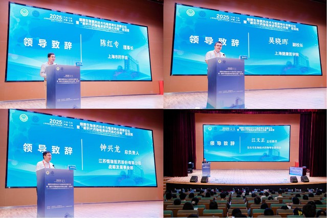 开幕式上,上海市药学会领导陈红专教授、上海健康医学院副校长吴晓晖、上海市药学会生化与生物技术药物专委会主任委员江文正、江苏恒瑞医药股份有限公司战略发展部总负责人钟兴龙分别致开幕辞。吴晓晖介绍了上海健康医学院的历史、现状及此次会议于上海健康医学院召开的意义,并诚挚欢迎各位领导、专家学者的莅临,期待与大家的合作交流。钟兴龙表示,将秉持“创新引领、质量为先”原则,深化与各方合作,共促药学学科发展。江文正介绍了上海市药学会生化与生物技术药物专委会的基本情况以及生化与生物技术药物领域的挑战。陈红专教授指出,上海作为我国生物医药产业的高地,在细胞治疗领域具有得天独厚的优势,希望以“细胞生物医药技术与临床转化创新论坛”为契机,让来自基础研究、临床实践、产业转化等各个领域的专家学者和业界精英能够汇聚一堂,共同探讨细胞治疗领域的最新进展、面临的挑战以及未来的发展方向。上海健康医学院科技处副处长陆秀宏主持致辞环节。