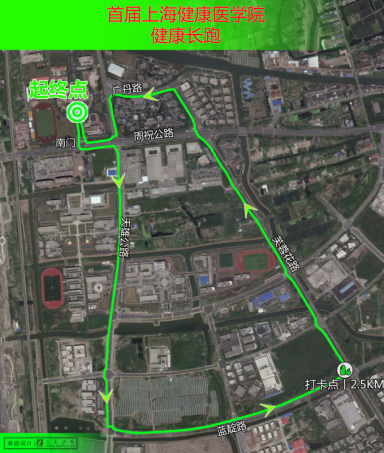 起点与终点:上海健康医学院北苑教学楼前广场。