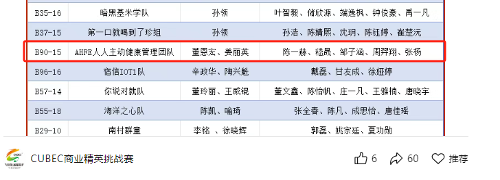 自2024年8月团队内部试行该模式以来,AHFE人人主动健康管理团队始终秉持立德树人理念,坚持以竞赛过程表现与成果真实性为核心筛选标准,注重竞赛的过程性和个人成长性,致力于将竞赛打造为真正的实践育人平台。团队尤其重视学风建设,对团队成员进行了引导与优化,着力营造潜心钻研、追求卓越的团队氛围。 通过上述举措,团队迄今已成功孵化项目7项,相关成果斩获包括2025年中国国际大学生创新大赛上海市金奖、2025年大广赛上海市金奖、2025年上海市“挑战杯”二等奖等在内的20余项竞赛奖项,并在多项教育部榜单赛事中实现历史性突破。未来,团队将持续深化“以赛育才”机制,推进课程创新与竞赛体系的深度融合,为健康服务领域输送更多复合型创新人才。