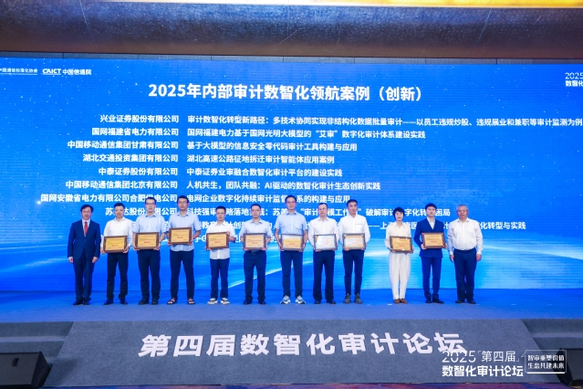 2025年9月5日,第四届数智化审计论坛在京召开。本论坛由中国内部审计协会、中国通信标准化协会主办,中国信息通信研究院承办,旨在促进政产学研用各方能力、经验和资源的共享共建共用。会上举行了2025年内部审计数智化转型“领航”案例授牌仪式,我校申报的《审计监督数字化转型与实践》案例成功入选创新案例,成为全国高校审计数字化转型的标杆示范。