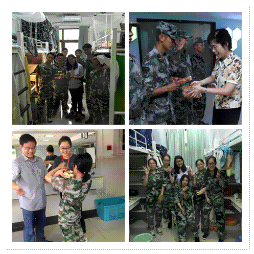 当天,副校长曹蓉蓉亲手把月饼送到了每一位来上海健康医学院进行指导军训的教官手里,向他们表达了学校的感谢之情,期望此次军训能取得好的成果,增强同学体魄和学生爱国主义意识。同时各个学院副书记、辅导员,走进新生宿舍,亲手将月饼送到新生手中,也给新疆少数民族新生送去水果。老师们和新生亲切交谈,询问他们到校后的适应情况,叮嘱他们有问题及时和辅导员反映,提醒他们打电话回家问候父母。接到月饼,学生们的脸上洋溢着感激和幸福的笑容。