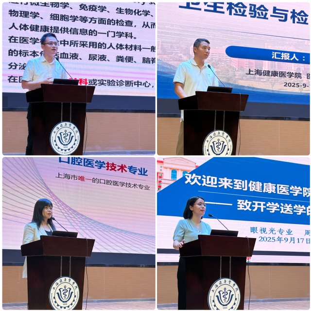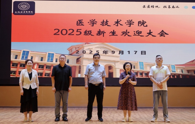 孟秋时节,浦江之畔,2025级新同学如约而至。为引导新生尽快适应大学生活,明晰个人规划,2025年9月17日上午,医学技术学院在东苑800人报告厅举行2025级新生迎新大会。医学技术学院党总支书记姚谷芳,副院长陈凤贞、副院长陈林军、副院长李延飞、党总支副书记关磊,医学检验技术专业主任金磊、卫生检验与检疫专业教研室主任芮闯、口腔医学技术专业主任董晛、眼视光专业主任周静、学院专职辅导员,2025级新生以及新生家长共计500余人参加大会。大会由辅导员白妞主持。