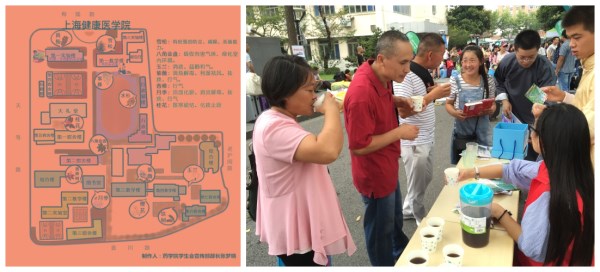药学院学生会与中药社结合专业,将乌梅、山药、冰糖等食材混合,制作成酸梅汤,为新生及家长倾情呈现。带有药学院特色的乌梅汤不仅消除了新生与家长奔波的疲劳,更是解渴、健康的饮料。秘制酸梅汤得到了新生、家长的厚爱,让新生从一踏入校园就开始接触药学院的特色,提高专业对新生的吸引力。。